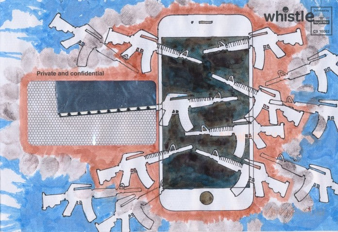 Medium: Ink and part of mobile phone screen
