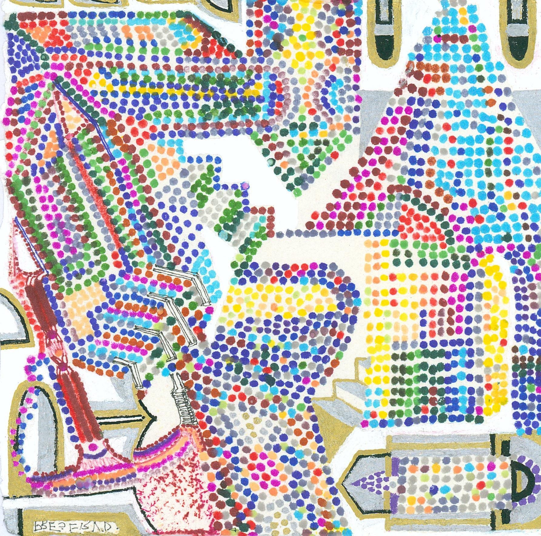 Fineliner and fabric paint on recycled paper with cotton rags - various colours